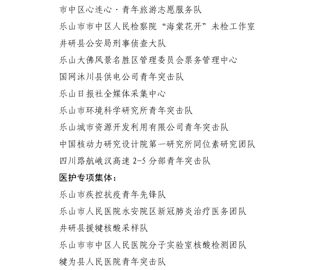 第三届“践行十爱·德耀嘉州”——“乐山市向上向善好青年集体”名单(共15个,排名不分先后)