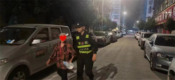 2022年5月7日晚22:50分许,正在街面开展巡逻任务的乐山市公安局特巡警支队三大队接群众求助称,一老人在市中区新互联超市附近走丢,不知到回家的路。巡逻特警立即找到老人,并询问老人情况,老人只记得自己家住乐山市市中区万人小区,自己是眉山人,女婿陈某某,其余已不记得。巡逻特警发现老人带有一张门禁卡和一把钥匙,随即陪着老人到达老人描述的万人小区。因该片区为无物业小区,居民都是自建独栋房。特警便带着老人在附近街道逐栋试用,经过一个多小时的努力,最终确定了老人所在居民楼,进入居民楼后,老人确认自己住在2楼。巡逻特警和老人敲开老人的家门,令人欣喜的是老人家中有人,在确认是老人的女婿后,巡逻特警将老人交给她的家人,并再三叮嘱他们要加强对老人的看护,并讲解了防止老人走丢的基本措施。随后,巡逻特警返回辖区继续巡逻,此时,已是5月8日凌晨1时许。