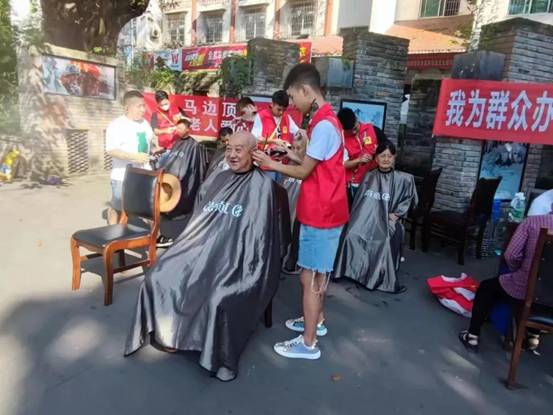 “叔叔,我手艺怎么样?看我剪的帅不帅?”“帅得很,谢谢小伙子。”志愿者耐心地帮老人围上围裙,推剪、碎剪齐上阵,一边理发一边和老人唠家常,充分发挥自己的技艺,利用手中飞舞的剪刀,为群众修剪头发。没有花哨的造型却“剪”出了大家的笑容,同时也“剪”出了对老年人的关爱。经过一番修剪,换了个发型的老人更显利落、精神、干净。