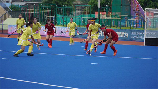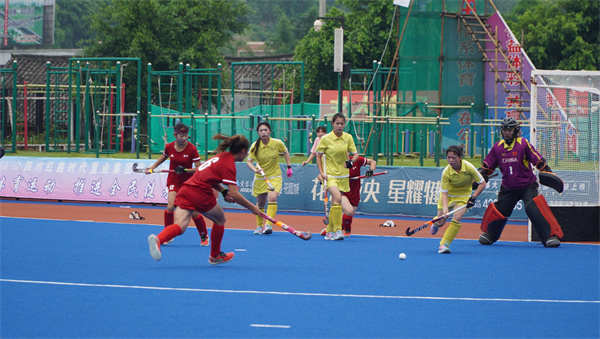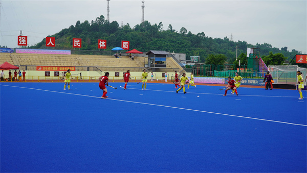 7月18日,“四川农信杯”四川省第十四届运动会“红鑫·花园城杯”曲棍球比赛甲组赛进入首个比赛日,乐山队与德阳队展开激烈比拼。