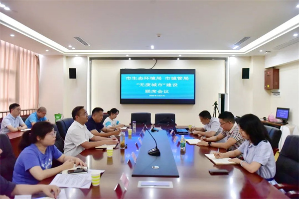 7月21日下午,市生态环境局、市城管局“无废城市”建设联席会议在市生态环境局20楼会议室召开。市城管局党组成员、市容环境卫生公共服务中心主任张建华,副主任梁林海、魏堃及市生态环境局“无废城市”建设工作专班全体人员参加会议。