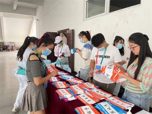 在报到现场,赛事工作人员和志愿者以良好的精神面貌,满怀热情地接待每一位远道而来的运动员和教练员。同时,按疫情防控要求,本次比赛全程闭环管理。各代表队运动员、教练员以及工作人员都按要求提交核酸检测报告,签订疫情防控承诺书。报到现场井然有序。