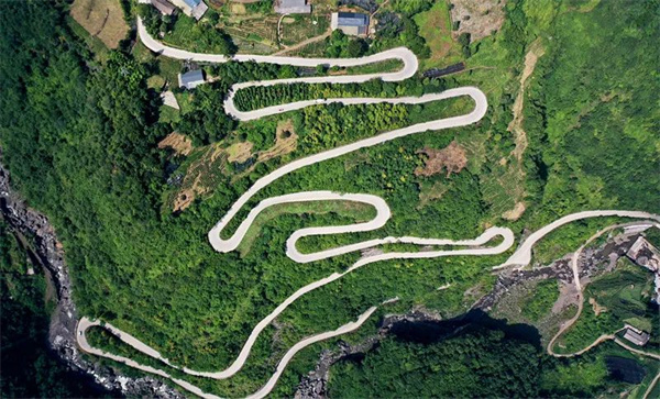 这里青山环抱、流水潺潺,沿峨眉南山村道一路蜿蜒而上,沿途植被茂盛,峡谷幽深,水花飞溅。