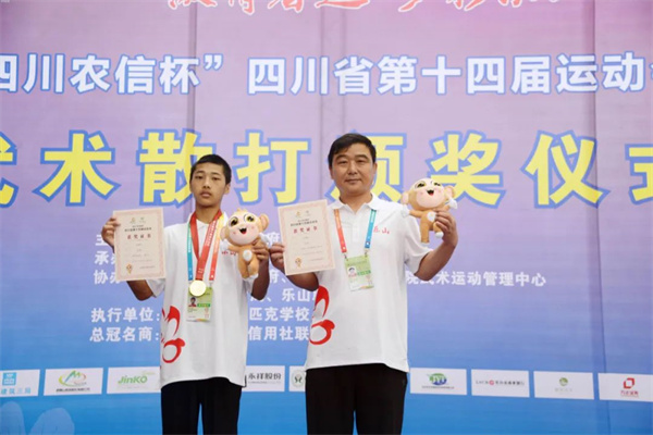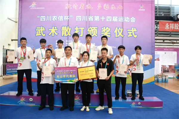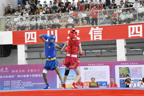 “四川农信杯”四川省第十四届运动会武术散打比赛在乐山职业技术学院举行,共有成都、乐山、南充等地21支代表队的256名运动员参加。乐山代表队经过5轮的激烈比赛,共获得本届运动会青少年散打比赛2枚金牌、1枚银牌、5枚铜牌。其中,1金1铜由犍为县罗城镇铁山武术学校选派的运动员获得。