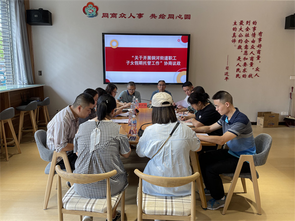 8月4日上午9点半,一场以“破解街道职工子女寒暑假期托管难”为主题的小微协商在铜河街道“有事来协商”平台举行,部分市、区政协委员,职工代表,区总工会、区妇联有关负责人以及“善行嘉”社工组织沙湾片区负责人等就相关问题开展务实真诚协商。