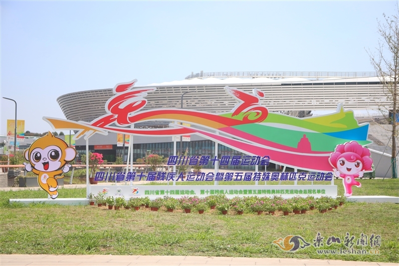 “四川农信杯”四川省第十四届运动会将于8月8日在乐山隆重开幕,在距离开幕式还有3天的时间里,省运会开幕式氛围浓厚。