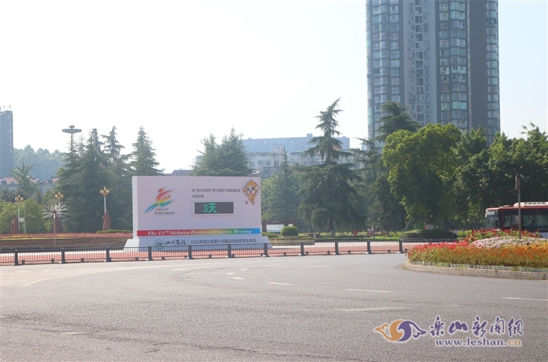 在乐山广场上,“四川农信杯”四川省第十四届运动会倒计时牌正在提醒着这场综合性体育盛会开幕式的时间,随着开幕式的临近乐山市省运会氛围愈发浓厚。