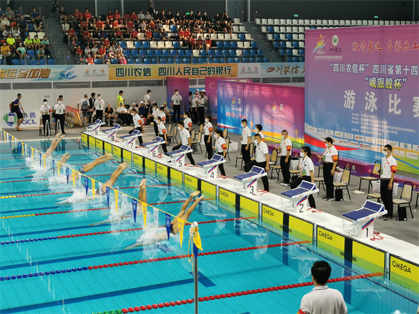 四川新闻网消息(李薪)8月9日,四川省第十四届运动会“峨旅股杯”游泳比赛在乐山市奥体中心游泳馆开赛。