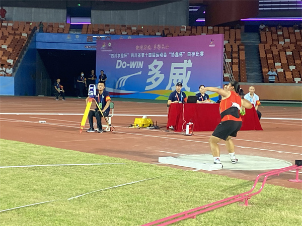 8月11日晚,四川省第十四届运动会“协鑫杯”田径项目女子甲组铅球比赛在乐山市奥体中心体育场进行决赛,来自全省13个市州的17名运动员展开激烈角逐。