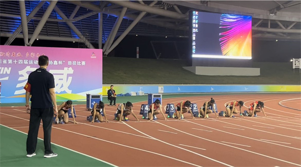 当晚9点25分,发令枪声响,运动员们就像一匹匹“脱缰的马”,“嗖”的一下便冲出了起跑线,随后,终点处便传来欢呼声和呐喊声。最终,在女子甲组100米决赛中,攀枝花市代表队的刘国怡以11秒52的成绩打破省运会历史记录,获得冠军;资阳市代表队的刘峡君获得亚军,成都市代表队的蒋雨彤获得季军。在女子乙组100米决赛中,德阳市代表队的谢庆以12秒22的成绩获得冠军,南充市代表队的赵心怡获得亚军,南充市代表队的苏琬月获得季军。