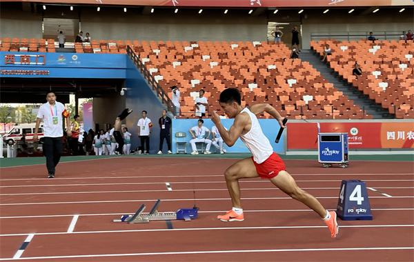 8月12日,四川省第十四届运动会“协鑫杯”田径比赛男子4✖100米接力决赛在乐山市奥林匹克中心进行。