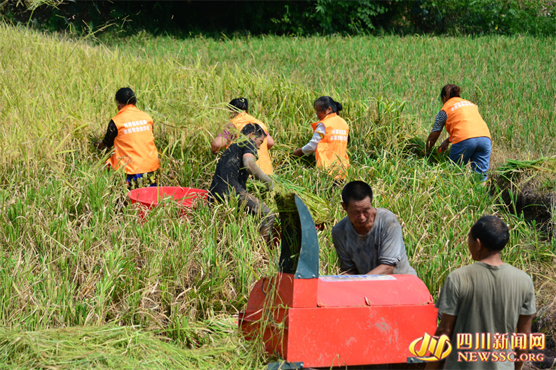 炎炎夏日,井研县宝五镇五龙场村的村民们正在抢收稻谷。收割机在金黄的稻田里,轰鸣穿梭,贪婪“吞噬”着稻穗......