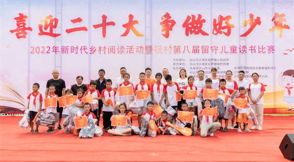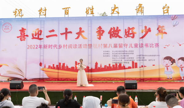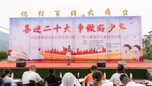 四川新闻网消息 “从巍峨峻拔的高原走来,我是冰山的一朵雪莲;从碧波环抱的宝岛走来,我是海风中的一只乳燕……”近日,大渡河畔乐山市沙湾区葫芦镇祝村,传来琅琅诵读声。一场以“喜迎二十大 争做好少年”为主题的新时代乡村阅读活动暨留守儿童读书比赛正在这里举行,20名留守儿童同台比拼,展现了新时代留守儿童朝气蓬勃的精神风貌和强国有我的责任担当。