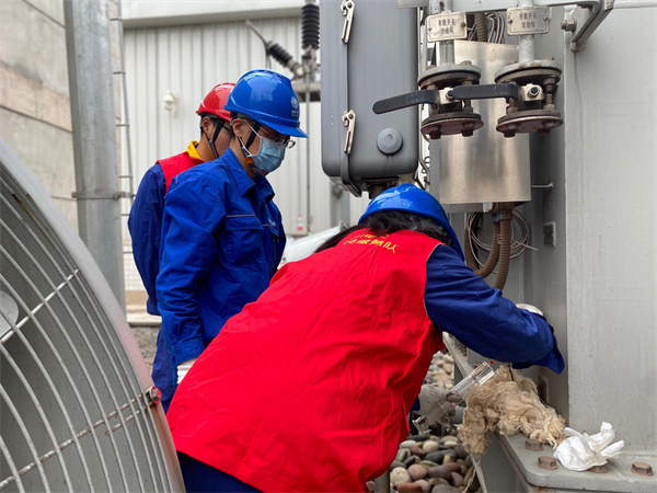 “今天我们一起按照电网诊断变电站的标准对你们的变电站进行了检查,发现的隐患和缺陷都做好了记录,汇总后一并提供给你们,在恢复生产过程中如果遇到什么用电难题,只要一个电话,我们马上就来处理。”来自国网乐山供电公司变电检修中心的罗磊对2家企业的设备维护负责人说到。当天,这支党服队共分为4个专业,分别对4个110千伏用户变电站的高压设备、继电保护交直流系统、后台监控告警信息等进行了排查,还对SF6开关进行了气体检漏,回去后,他们还将对当天采集的变压器油样开展分析,形成专业的诊断报告和设备运维建议提供给园区企业。