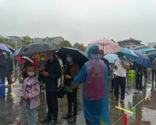 市委组织部机关党员干部在居住地社区开展志愿服务,组织社区居民开展核酸检测。
