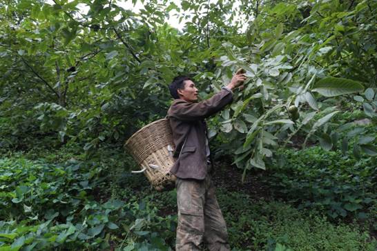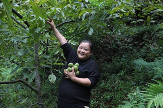 “我将自己家的土地流转给合作社,平常就在山上负责管理果园、采摘核桃,一年能增加两三千元的收入。”看着一颗颗采摘下来的“金果果”,兰联芳开心地说道。