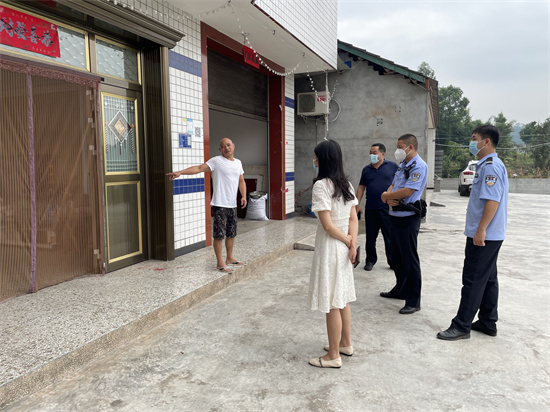 沙湾区柏林村第一书记曾桢协调民警告知中高风险地区返乡人员遵守居家要求