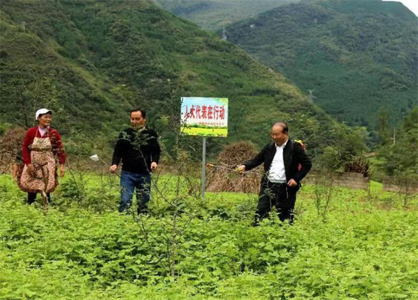 再行再试,不断拓展思路举措。深秋时节,为喜迎党的二十大,彰显人大担当使命,县人大常委会带领产业帮扶服务队深入试验点,针对前期试点工作中存在的问题,扎实开展“再行再试”行动。9月28日,服务队一行来到金岩乡挖吉村确定了“人大代表在行动示范区”,并耐心指导当地群众科学配比水溶肥,示范喷施苦荞、萝卜、红苕等秋种作物。走访交流中,服务队一行借机广泛宣传县农业农村局关于秋种每亩100元的补贴政策,引导村民克服种“懒庄稼”的不良习惯,再三叮嘱按照时间节点喷施高效有机肥,进一步提高秋季作物产量。