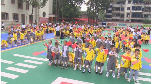 红旗飘扬,是秋风和祖国共舞,鲜花标语,是在为祖国庆生添彩。马边在各单位及重要路口,也分别挂上了红旗和标语。