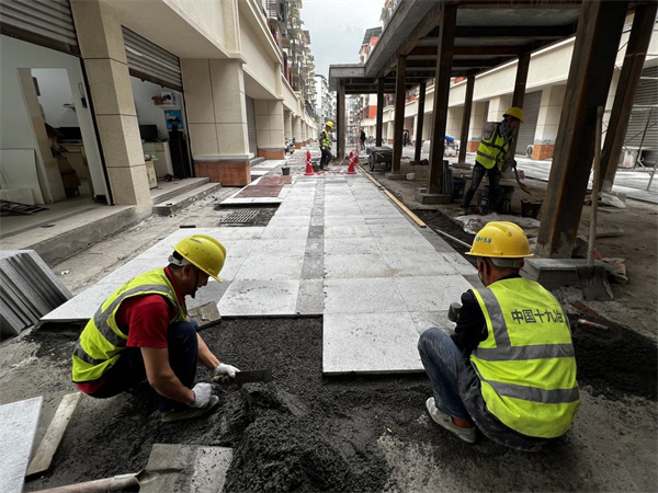近日,金口河区官村——和平老旧小区改造项目(一期)现场,工人们正在进行污水管网的铺设、墙面刷漆、地面硬化等工作,大家分工协作有序作业,热火朝天地推进小区改造工作。据金口河区官村——和平老旧小区改造项目经理万江介绍,改造进程现已到“冲刺”阶段,两个片区的近百名工人正在抓紧施工,完成最后的收尾工作。