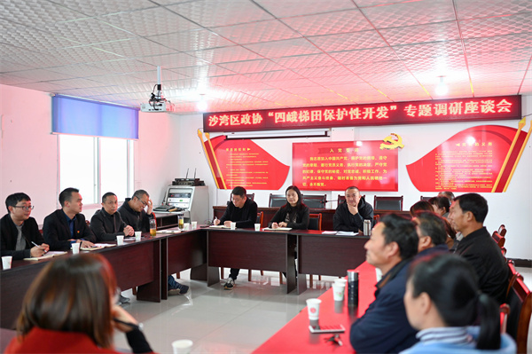 四川新闻网消息“要深挖梯田的农耕文化内涵,科学谋划、高标规划,坚持走农旅融合发展之路,保护开发好四峨梯田,多种粮、种好粮,为国家粮食安全贡献力量……”“要针对当前农村劳动力大量外出务工的实际,以农户土地入股等形式,由合作社或公司对梯田进行统一经营,确保梯田得到有效种粮利用……”11月29日,位于数千亩梯田中的乐山市沙湾区葫芦镇四峨山村村委会,在区政协组织开展的“四峨梯田保护性开发”专题调研座谈会上,市、区政协委员,民主党派、工商联和区级相关部门负责人,以及村民代表,围绕做好四峨梯田保护性开发积极踊跃建言。