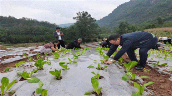 在共和街社区的西北方向,观大农业产业园区,以其地势平缓,土壤肥沃,阳光充足的自然优势,成为了村民们致富的风水宝地。放眼望去,几位村民正在种着秋季作物,刚种下的蔬菜苗迎风摇曳,预示着不久之后丰收的喜悦。“俗话说:各人自扫门前雪,莫管他人瓦上霜,村民们大多是这心态。这几百亩土地是党员干部们一户一户地宣传、劝导来的,着实是不容易”大池塘村村支书余义林说,“非常感谢群众的信任,我们将不负重托。紧紧围绕下溪镇产业发展理念,将这个园区做大做强。”