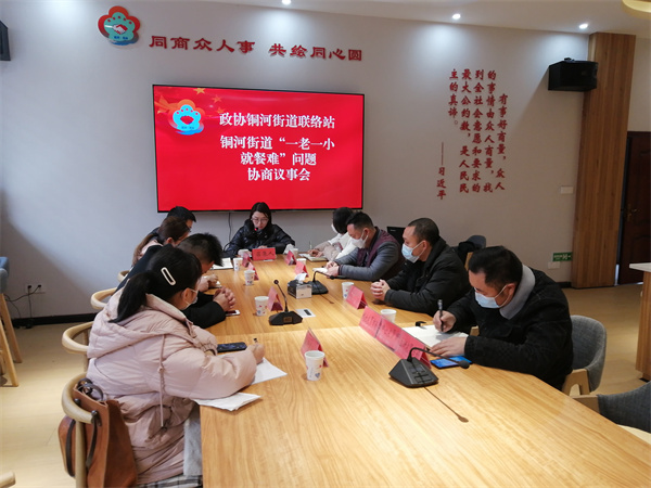 12月16日下午2点,小微协商会按时在铜河街道“有事来协商”平台开展,区政协委员、居民代表、特殊困难群体代表、爱心企业代表、餐饮企业代表、网约送餐企业代表,以及区级相关部门负责人等,就破解特殊群体吃饭难问题务实真诚开展协商。