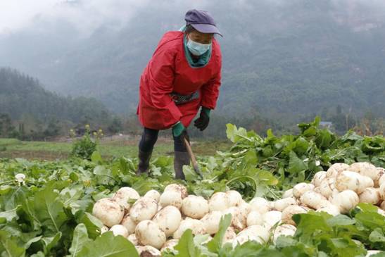 观音岩村村支书程荣告诉记者:“我们通过市场调研,咨询当地种植大户,邀请专家实地考察,最终锁定种植圆萝卜、白菜、莲花白、土豆等品种,并推出带状复合种植新模式,积极采用‘村支部+村集体经济+专业合作社’的模式,确保实现规范化种植、集约化管理、规模化增产。”