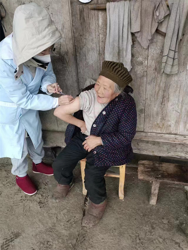 “打完针之后休息30分钟,如果有什么不舒服,请及时告知我们。”每到一户人家,医务人员都会详细了解老人身体状况,并在为老人注射完新冠疫苗后反复叮嘱老人及他的家人注意事项。