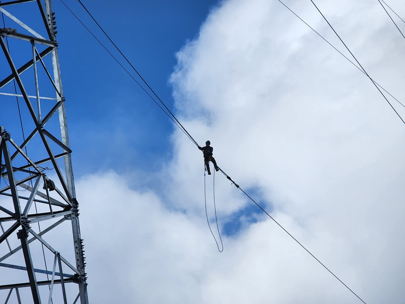 王扬捷进一步说道,为确保作业安全,工作负责人在每个作业点位安排了2个以上的人员进行专责监护,为解决大雾看不清的问题,工程施工首次采用了无人机立体安全巡查,时刻督促高处作业人员落实好安全措施;项目部还为作业人员统一配发了棉衣、“暖宝宝”等保暖物资,现场每日供应两次热水袋,并采取人员轮换班的方式多举措防寒;为确保作业人员作业及行进过程中的安全,还在作业点位和沿途临边、临崖处设置了近1000米的硬质围栏……