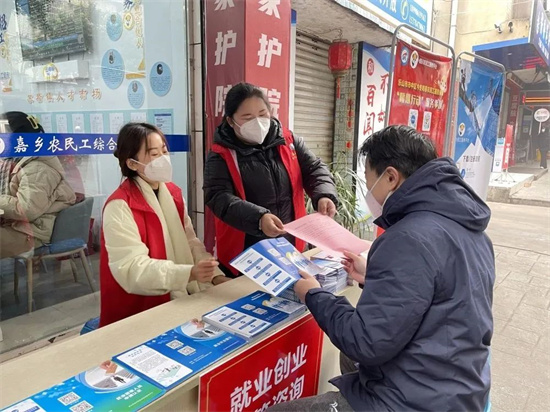 从就业创业政策咨询、“双线”岗位招聘到邮政服务、金融服务、电信服务、“嘉嫂行”公益服务、义诊服务,农民工不仅能在这里一站式体验多重服务,还能领取“嘉乡情”健康包,赠送口罩、消毒液等物资,将安全回“嘉”、健康过年的“嘉乡音”顺口溜通过短信形式精准发送至14576名他乡务工农民工,各式各样的活动吸引农民工朋友们络绎不绝前来参加。