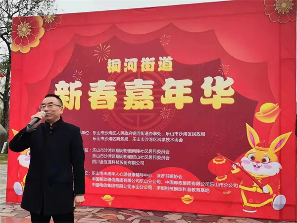四川新闻网消息 为进一步丰富辖区居民文化生活,营造热烈、喜庆的春节氛围,增强邻里间感情,弘扬尊老爱幼的传统美德,让居民过上幸福和美的新年,2023年1月14日上午,由沙湾区科协、区民政局、区商务局、铜河街道办事处主办的“新春欢乐嘉年华”主题活动在沫若广场举行。市科协党组书记、副主席左尔钊、区政协副主席钟少兵出席活动并致辞。
