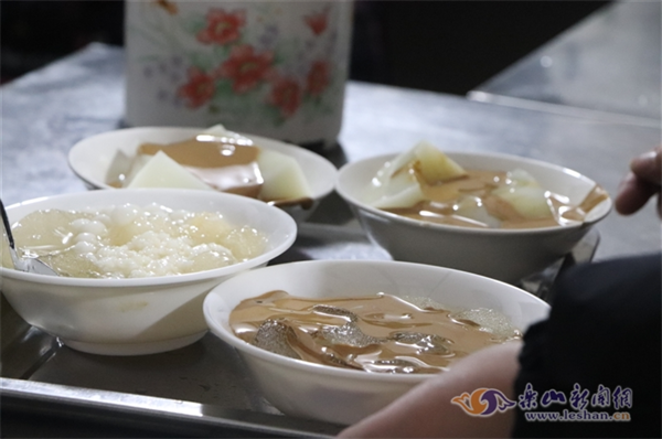 “苏稽好多好吃的哦,我和家人昨天晚上就从成都赶到乐山。今年春节哪都不去了,要把乐山耍遍,吃巴适。”几年前,王义和妻子、岳母来过苏稽,对跷脚牛肉、徐凉糕情有独钟,“这次到乐山,第一站就直奔苏稽古镇,苏稽变化太大了,真的是好山好水好美味,走在街上我的口水都止不住。”