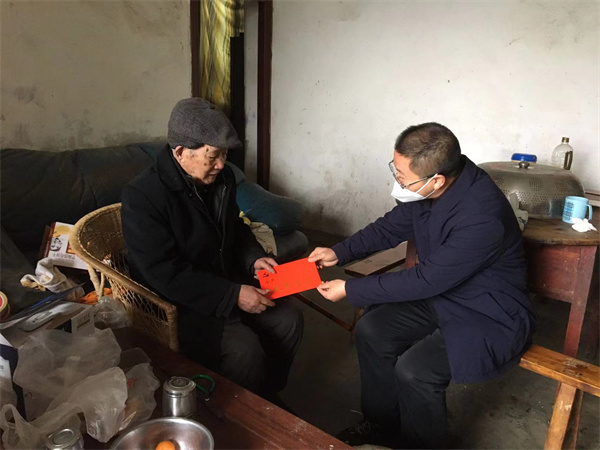 同日,在轸溪镇寨子村86岁胡师太大爷的家,区政协副主席黄华春向老人送上慰问金,叮嘱老人要注意防寒保暖,饮食上注意加强营养。胡师太是老党员,老伴也年逾80岁,二人体弱有病,生活虽不算富足,但也过得温馨。接过慰问金,胡师太和老伴千恩万谢,表示将坚守初心,带头讲文明守纪律树新风。