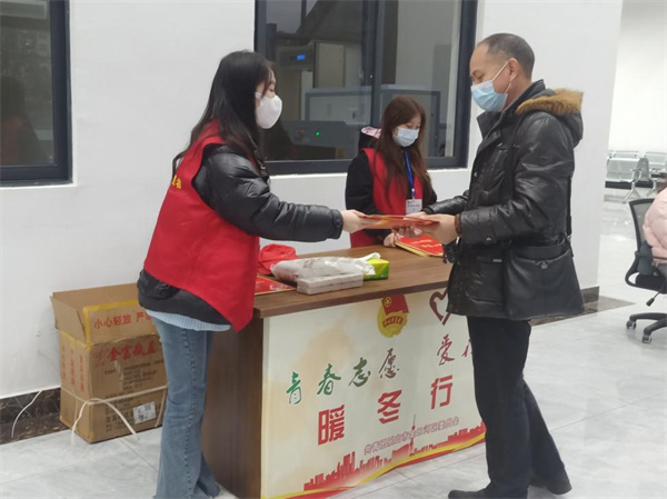 春节期间,在新的金口河汽车客运中心站内,前来问询的人络绎不绝,团区委“小金灵”青年志愿者在客运站为乘客提供咨询、指引服务。