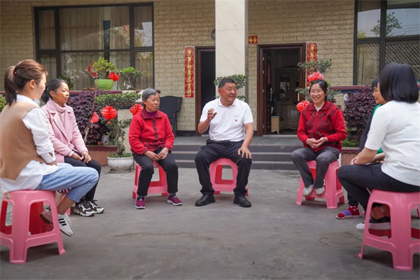 苏稽镇楠园村支部书记严崇伦和村民座谈村集体经济发展
