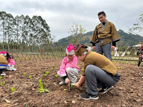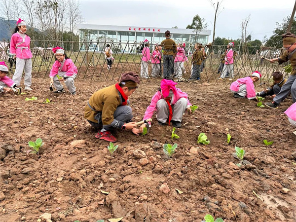 近日,位于乐山市市中区悦来镇荔枝弯村的研学基地,迎来了首批来这里体验农耕的同学们,他们是来自通江小学和柏杨小学两所学校的小学生们。只见他们换上了富有乡村和古韵的装扮,走进了一片耕地,在老师的讲解下,拿起农具,真真实实地体验农民耕种。有的挖,有的种,干得热火朝天。这些来自城市的孩子们,在一番体验之后,都纷纷表示,不仅收获了知识,更收获了别样的劳动快乐。