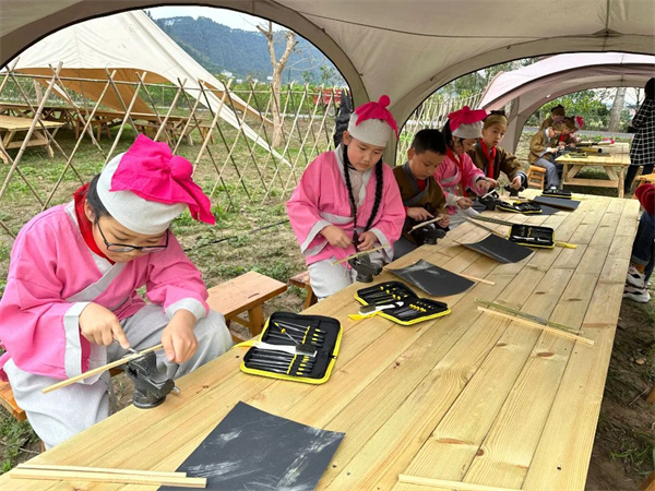 除了实际的农耕种植,孩子们还在研学老师的带领下,了解更多农村的手工劳动——手工制作竹筷。
