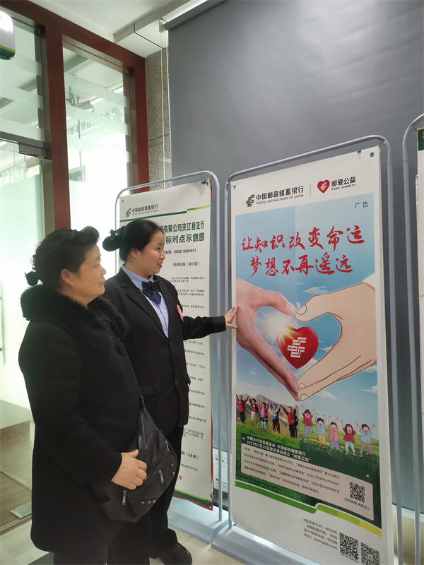 为达到理想的宣传效果,邮储银行乐山市分行工会提前筹划,辖内26个网点统一张贴“邮爱公益”宣传海报,摆放“邮爱公益”展架,LED滚动宣传“邮爱公益”方式,让客户了解活动内容,邀请客户一起为公益助力。
