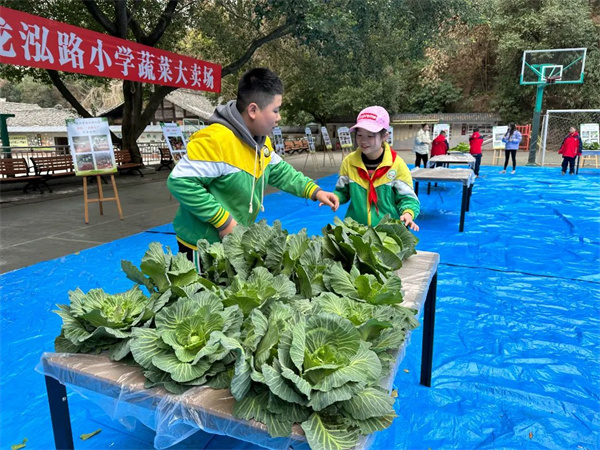 每年秋天,龙泓路小学在校内建设的“龙小劳动实践基地”都是一派繁忙的秋收景象。同学们不仅享受到劳动丰收的喜悦,还在校内进行劳动果实的分享以及蔬菜的售卖。学校全力开发打造的“走进嘉州古诗词”“狮舞”“耍牛”“嘉州绣”等本土校本课程,与德育、智育、体育、美育相结合,实现知行合一,促进学生形成正确的世界观、人生观、价值观。