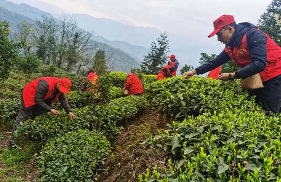 “家里就只有我自己,现在60多岁了,身体也不如从前了,3亩多的茶园我一个人实在摘不过来,采茶雇工费又高……”建设镇春林村一组五保户袁灯才很是着急,“农时不等人,明前茶、贵如金,如果这段时间不抓紧采摘,再留个几天,那芽头长老了等级就差得多了,损失可就大了。”随着气温逐步回升,茶园开始大面积采茶,迎来“明前茶”采收和加工旺季,为了帮助缺乏劳动力的群众解决采茶之忧,建设镇党员志愿者身披“红马甲”,腰系竹茶篓,变身“采茶工”,助力茶农抢抓农时采摘新茶。