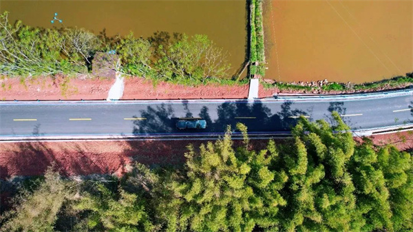 春光明媚,景色迷人。新修建的茅白路(青平至白马段)宽敞整洁,路面平整,标线明晰,道路蜿蜒在水塘边和柑橘林间,与蓝天、绿树、碧水交织成画。茅白路(青平至白马段)连接起青平镇和白马镇,将带动沿线林业产业和水产养殖业的发展。