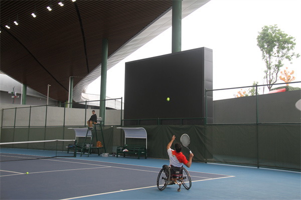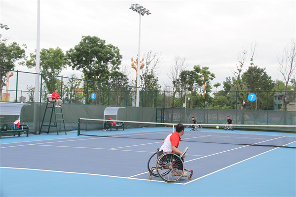 赛场上,肢体残疾组的运动员们一边用手滑轮椅,一边打网球,动作灵活自如;听力残疾组的运动员们则依靠手语在“无声”的世界里与对手展开激烈的角逐。