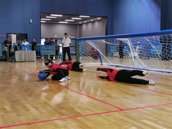 随着裁判的一声哨响,比赛正式开始。球场上,双方运动员头戴眼罩,屏气凝神,全神贯注,从刚开始的你来我往,到乐山队队员逐步进入状态,配合愈发默契,发球速度愈加凌厉,终于攻破了南充队大门。比赛由此开始了一边倒的节奏,上半场乐山队以6比0告胜。稍事休息后,下半场乐山队再接再厉,最终以10比0结束比赛。