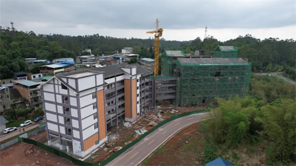 近日,位于乐山市市中区白马镇场镇的市中区嘉州老年养护院建设现场,两栋建筑拔地而起,已完成主体建设。塔吊旋转不停,来回吊运物料,在建成的主体结构内,施工人员有序作业,现场一片繁忙之景。