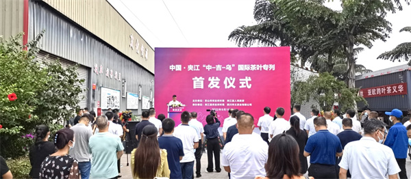 2022年9月19日,“中国夹江‘中—吉—乌’国际茶叶专列首发仪式”在夹江县木城镇举行。披红挂彩的出口茶大卡车,陆续从厂区发往成都青白江火车站,从铁路海关口岸出发,满载815.5吨、价值264.65万美元的精制干茶“夹江茶叶出口中吉乌专列”直达中亚,标志着夹江绿茶首次以专列形式走出国门。