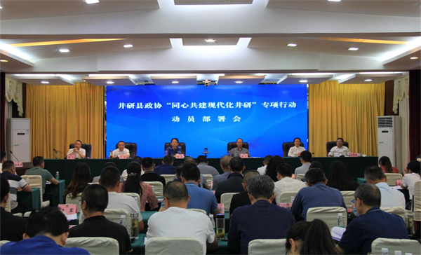 四川新闻网消息 5月25日,井研县政协召开“同心共建现代化井研”专项行动动员部署会。井研县二级巡视员杜宏,县政协党组书记、主席提名人选、县总工会主席谷平,县政协副主席王纯兰、罗维、刘国强、龚飞出席会议。