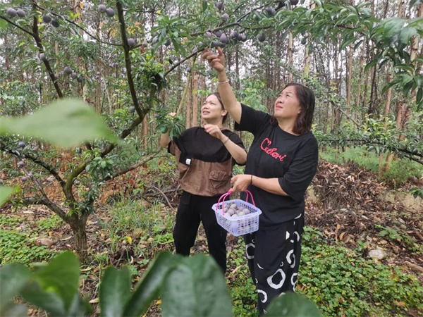 “今年大的商贩已经来了两次,每次拉走一万多斤;然后过来的就是小的商贩,一天都是3000斤。剩下的就是自由采摘,自由采摘5元一斤,每天来的人还很多,销量还是不愁,其他的还是比较可以。”正在果园里采摘李子的剑峰镇五星村村民陈淑芬开心地说。