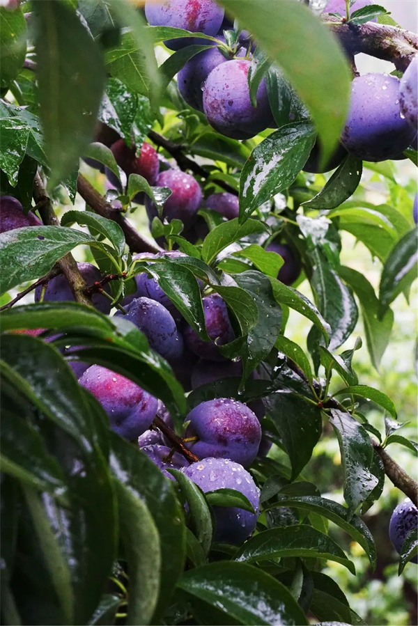 在剑峰镇五星村,绿油油的李子树有序地分布在道路两旁,眼见李红叶绿,枝头满挂,挂着露珠的李子散发出诱人的果香,硕大的果粒,紫色玛瑙般的外观十分漂亮,村民们忙着采摘,个个喜上眉梢。