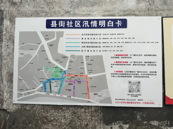 为了安稳地度过汛期,县街社区早早地做好了各项防汛减灾工作。“我们按照要求,制定了应急预案,开展了防汛演练,并在沿河设置了警示标牌。对沿河小区居民尤其是独居老人和残疾人情况进行了摸排统计,对下河口隐患地带加强日常巡查,及时劝阻和制止群众的危险行为,同时我们也会在主汛期对下河口采取临时管制,确保辖区居民群众生命安全。”方超说。